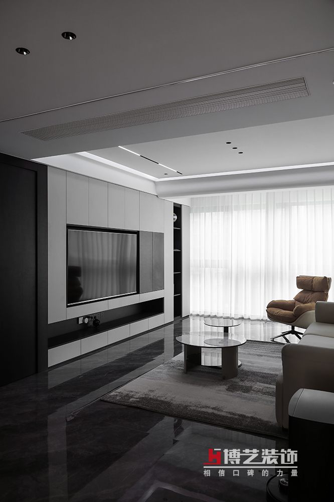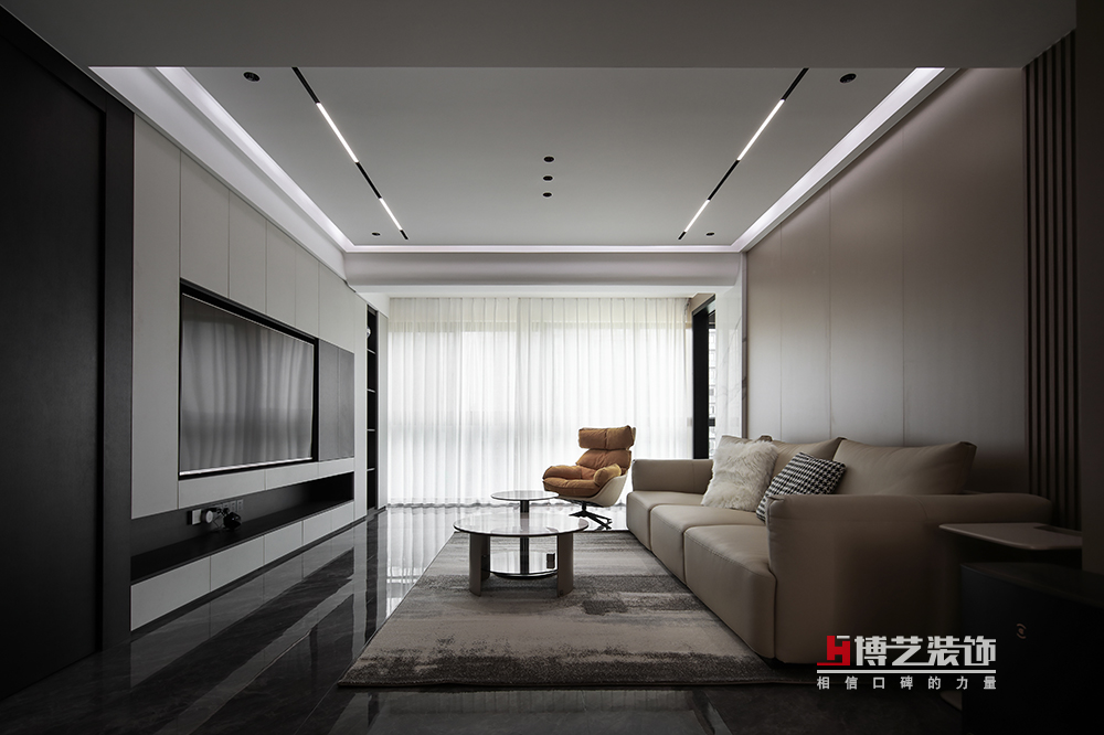 【博藝新作】平湖壹號(hào)|160m2用光穿越空間 讓暗黑系也自帶溫度