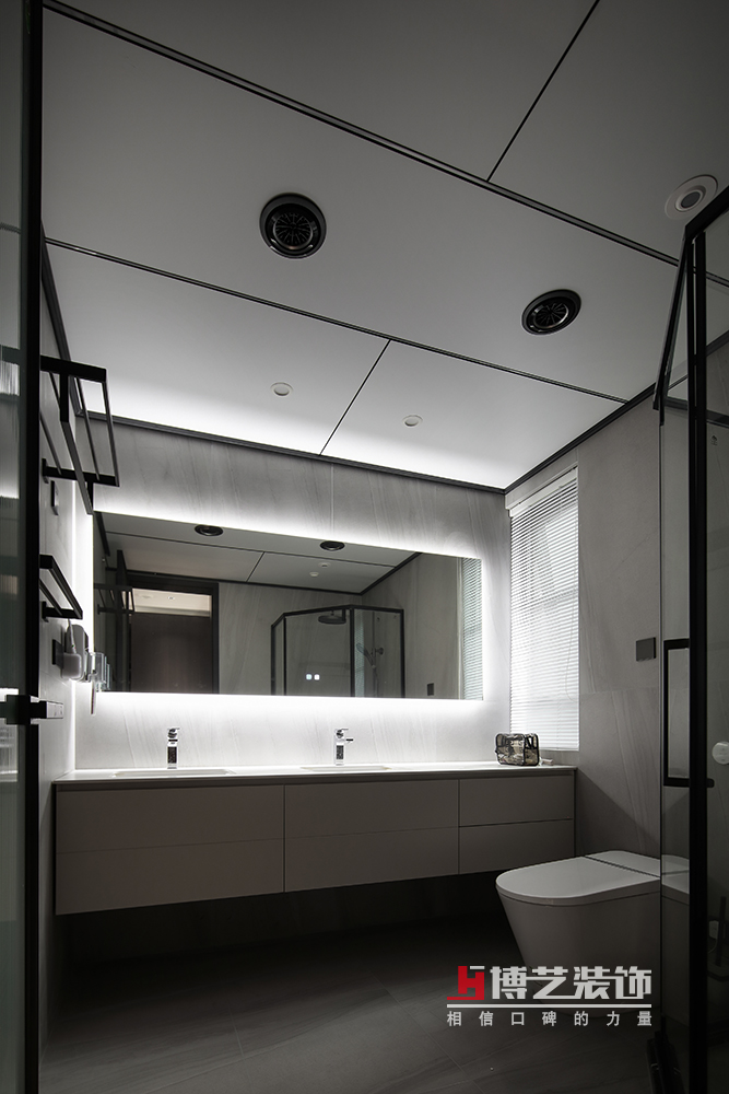 2. 同時(shí),我們保留了三個(gè)衛(wèi)生間,主衛(wèi)做了雙臺(tái)盆,公衛(wèi)做了干濕分離,滿足各個(gè)時(shí)段家人之間的需求。