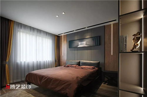 “你的臥室,藏著你最原始的樣子,簡單和舒適是衡量一個空間的完美尺度”。取材質(zhì)之美,筑宜居之室,飾面板、硬包以及線型燈的結合,構筑了一處讓身心都能詩意棲息的天地。