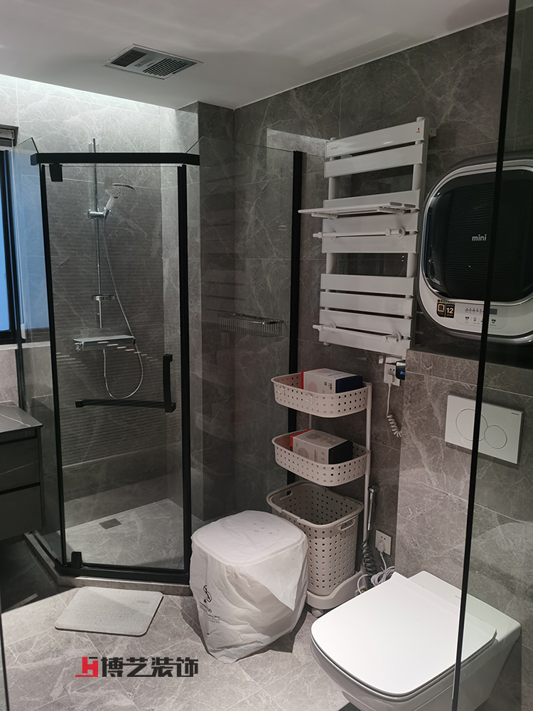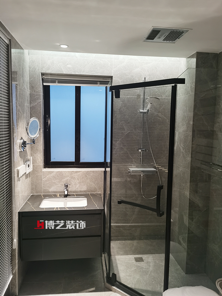 黑白灰的主衛(wèi)空間,低調(diào)的奢華,用玻璃隔斷增加采光,更添時尚與性感。