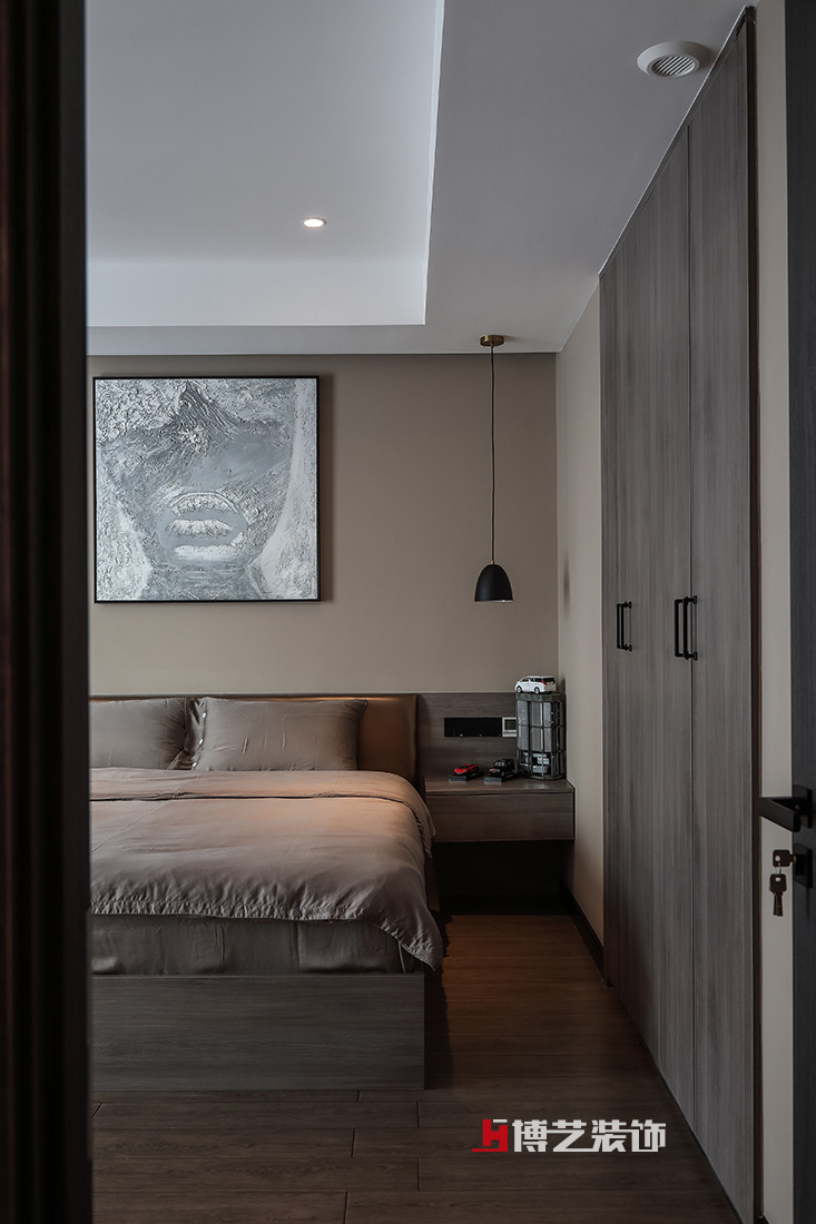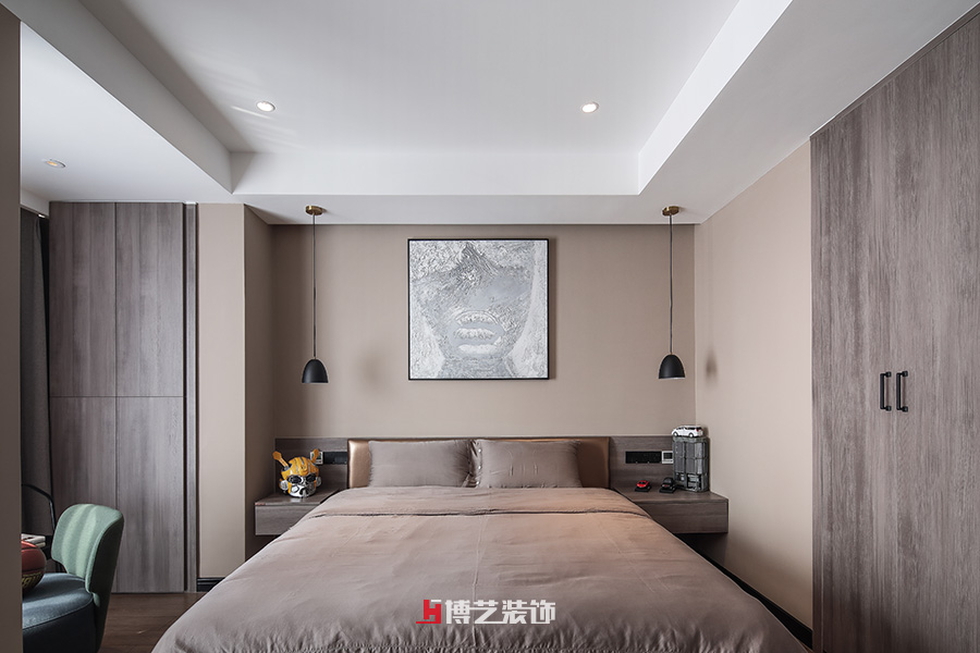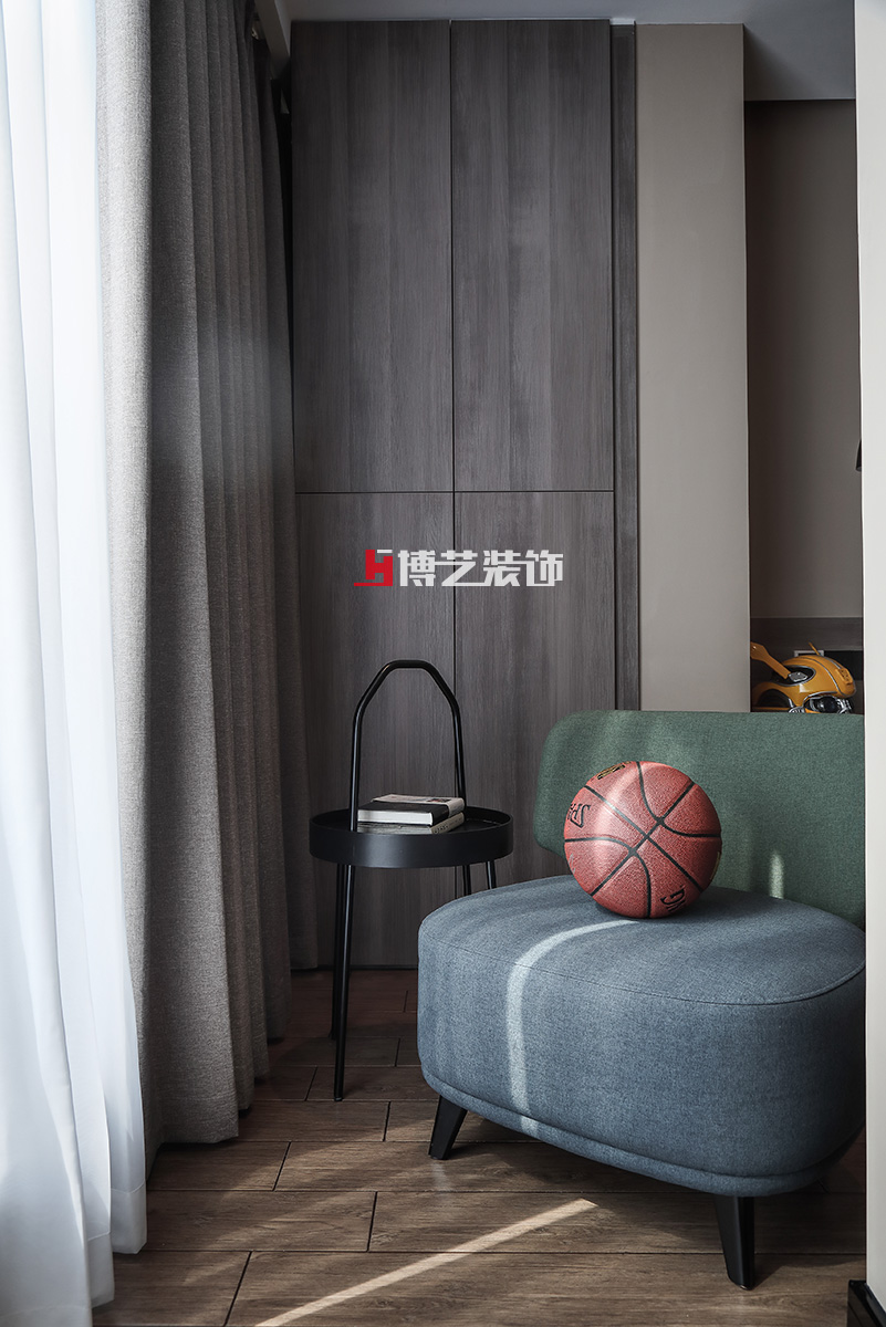 男孩子的房間則以咖啡色為主,從墻面到木飾面,不同的色調(diào)搭配出不同的層次,樸素又不失雅致。
