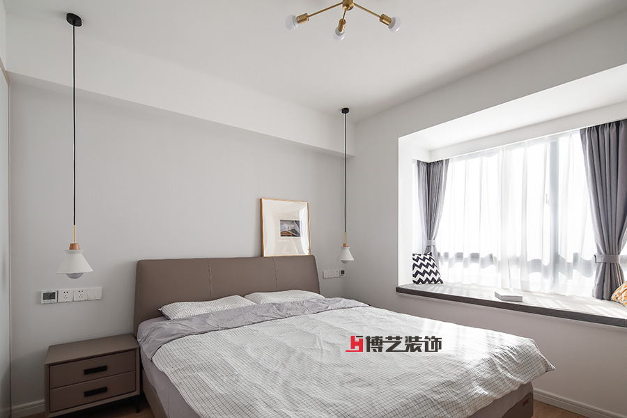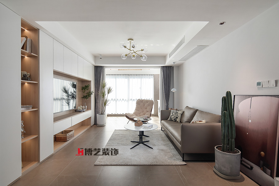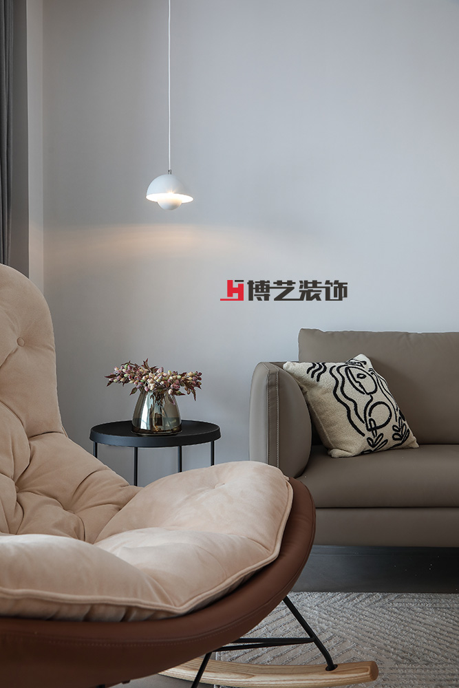 低飽和度的色調(diào)呈現(xiàn)出高品質(zhì)的生活氣息,隨意擺放的抱枕,裝飾畫展現(xiàn)出自然的美感,寧靜而和諧。