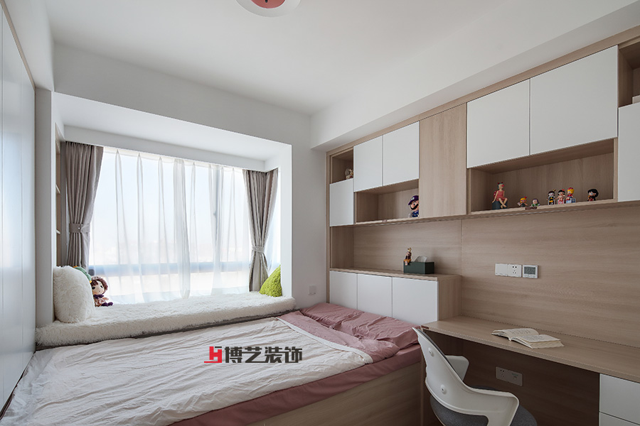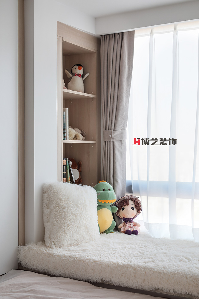 溫柔的自然之色中點(diǎn)綴俏皮粉色,簡(jiǎn)單中顯出幾分可愛。毛茸茸的抱枕,幾個(gè)布玩偶,是一個(gè)小女孩對(duì)我們的訴說。