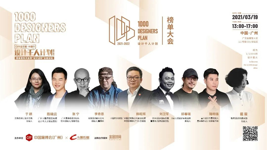 3月19日,CIFF設(shè)交圈“設(shè)計1000計劃2021-2022”榜單發(fā)布大會暨“設(shè)計進階”主題論壇在第47屆中國家博會(廣州)舉行。