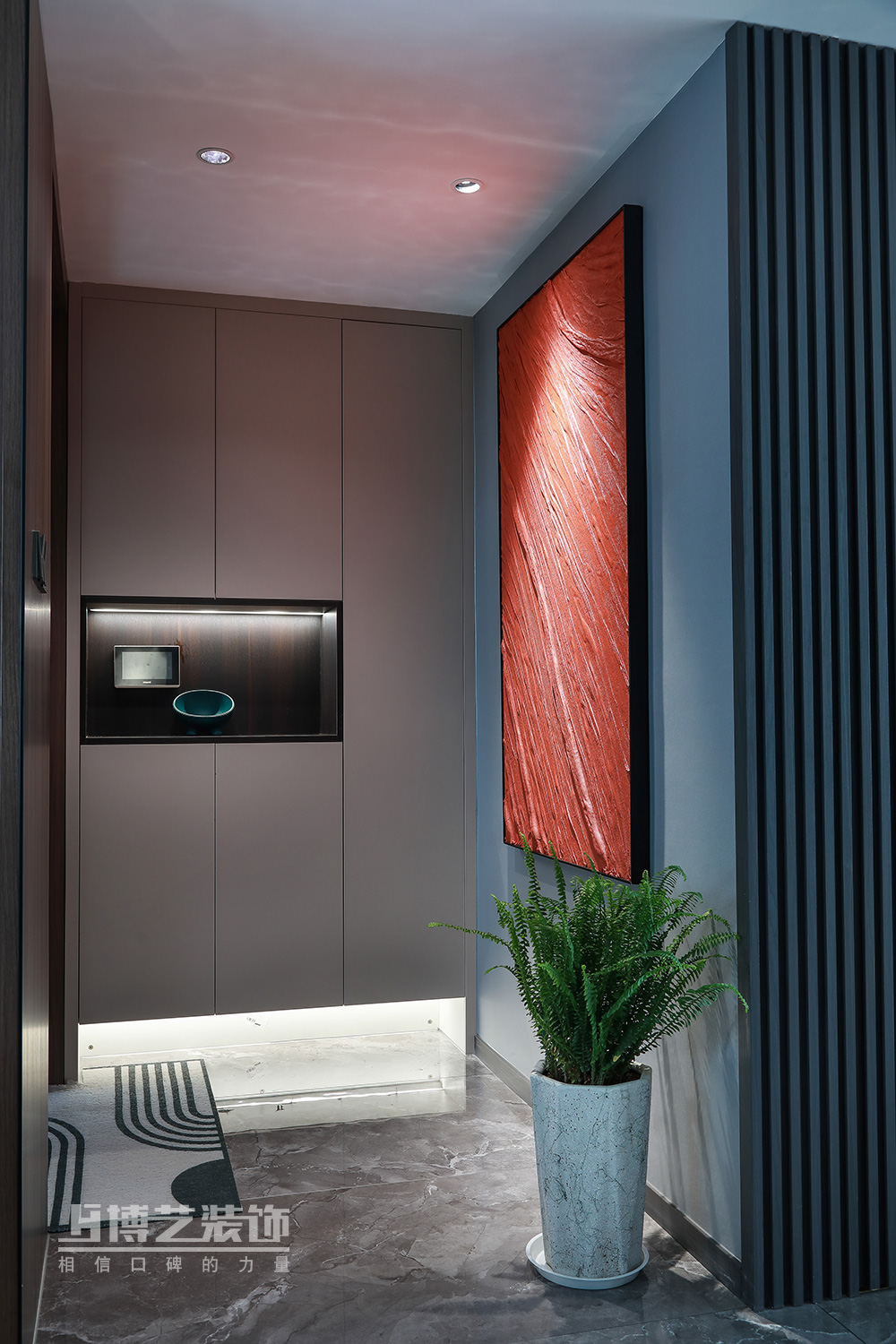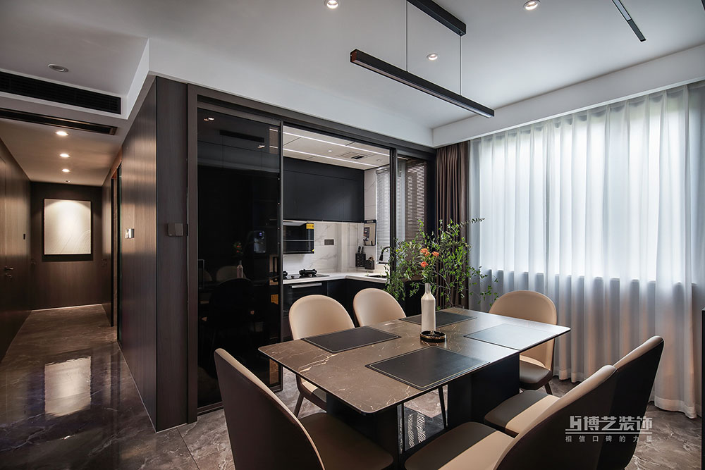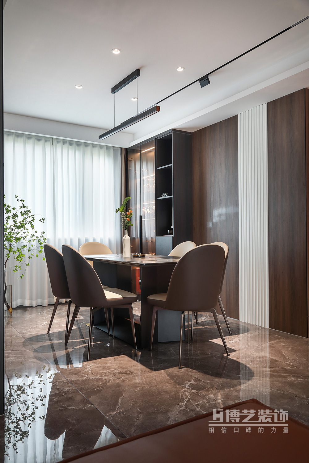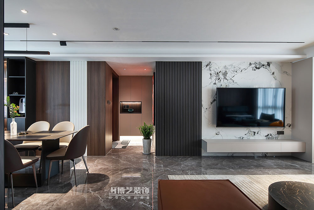 設計師圍繞“以簡為精”的設計,讓材質與色彩充分發(fā)揮,塑造出一個高貴的生活空間,