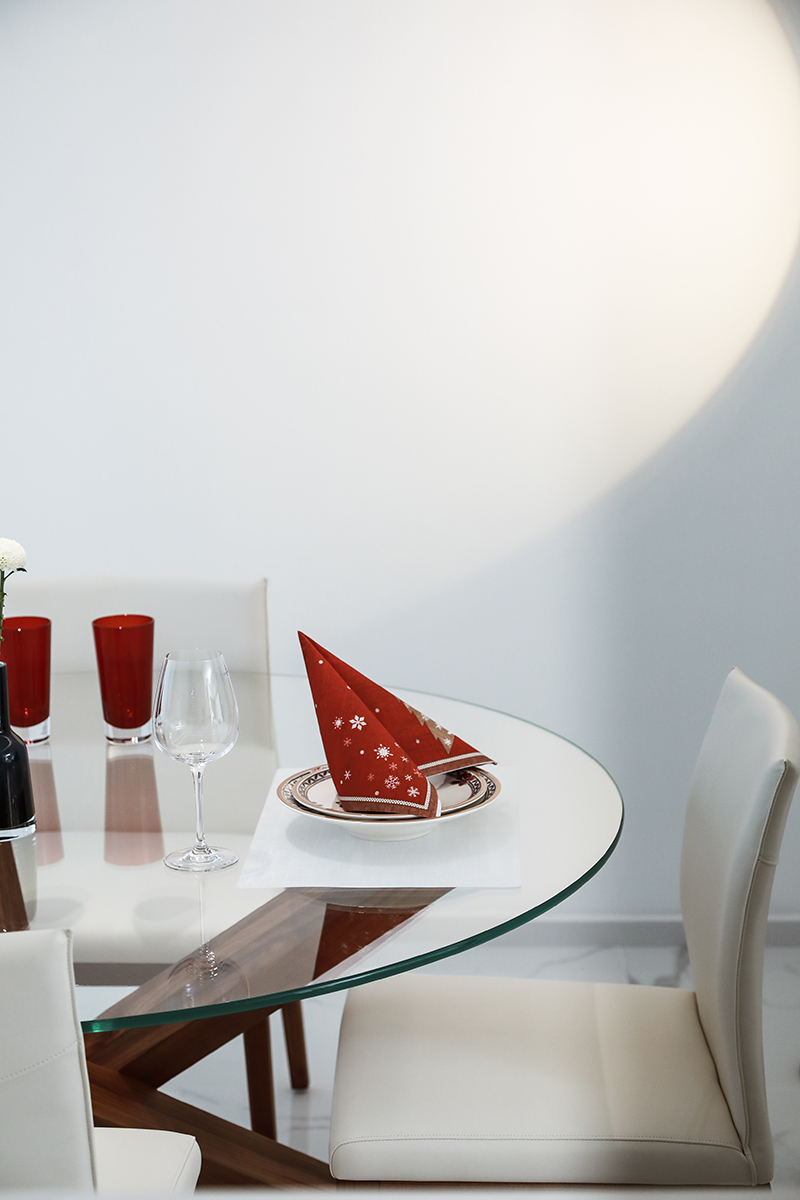 耀眼的紅色與純白的空間共鳴,把陽光帶來放在墻上,生活的儀式感化為具象,美好的流連著駐足。