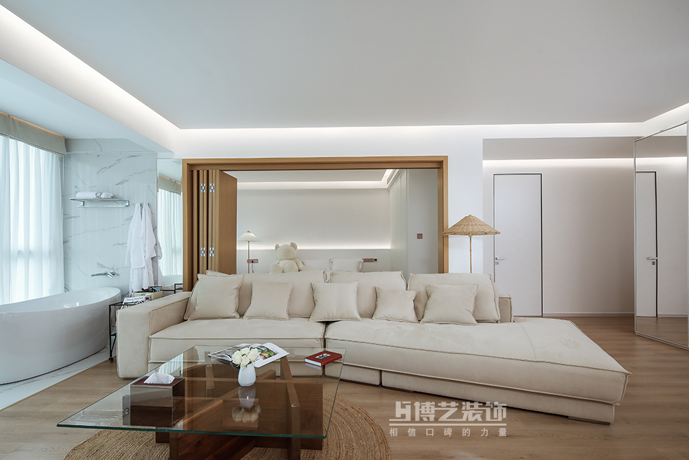 白色,素雅,空靈而迷人,大面積的白色,通鋪延展的木地板,帶來了空間里的溫暖,搭配氣質滿分的軟裝,在細節(jié)處勾勒精致的生活意趣,打造一方安逸舒心的美學空間。