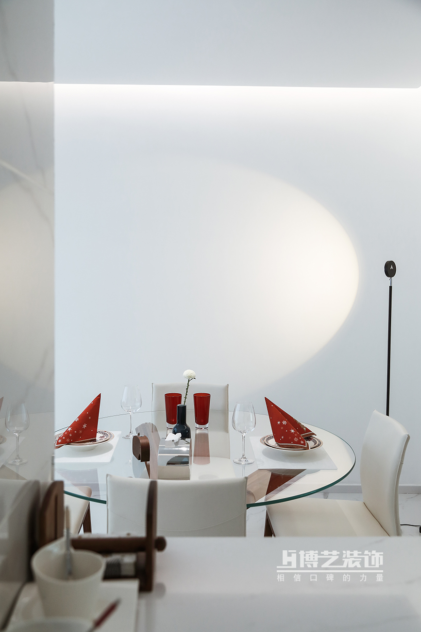 本案的業(yè)主知性優(yōu)雅,從格局到風格最終定義呈現(xiàn)了現(xiàn)代的極簡風,純白的色調,極致的浪漫主義色彩,予以空間更多的自由感,以藝術的美學同感表達表象之下高雅的藝術生活。