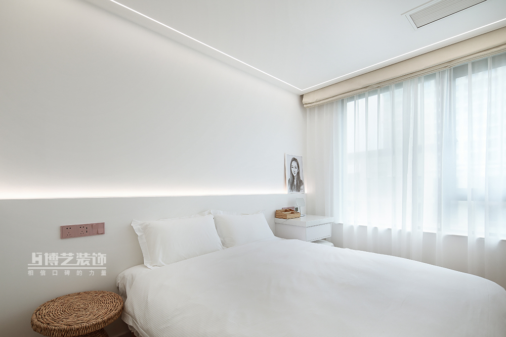 寧靜美好的白色空間,拋棄雜念,營造一個和諧、安寧的睡眠氛圍,床頭微弱的燈光飽滿的安全感,伴你輕松入眠。