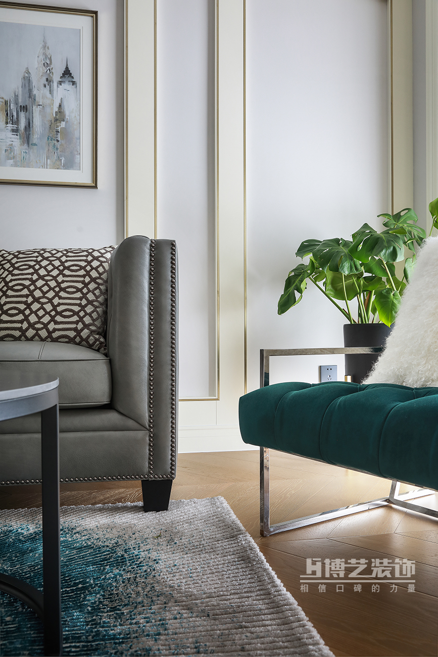 水洗皮的灰色沙發(fā),搭配藍白大花單椅,舒服的色系搭配,清爽大氣更添一份家的溫馨感,精致的軟裝陳設,提升整體的品質(zhì)感。