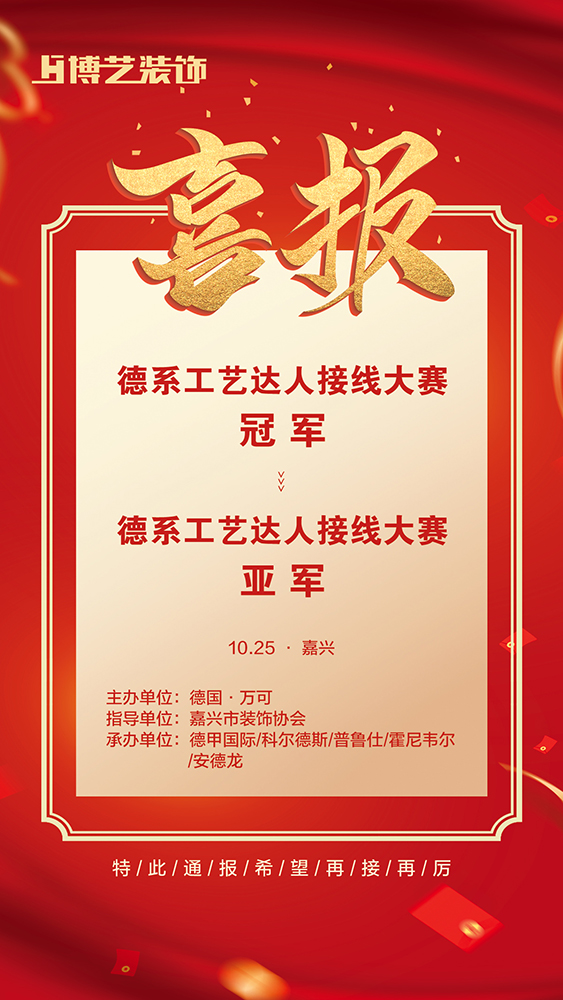 2021年10月25日,在嘉興中港城舉行的德國萬可德系工藝達人接線大賽中,博藝裝飾的電工師傅們以過硬的工藝技能和穩(wěn)定的心理素質(zhì)脫穎而出,分別榮獲比賽冠軍和亞軍的殊榮。