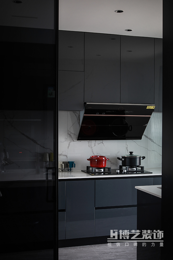 開(kāi)放式的西廚空間,與客餐廳形成聯(lián)動(dòng),回字形的動(dòng)線,讓家人之間的互動(dòng)與溝通更加緊密且隨意。