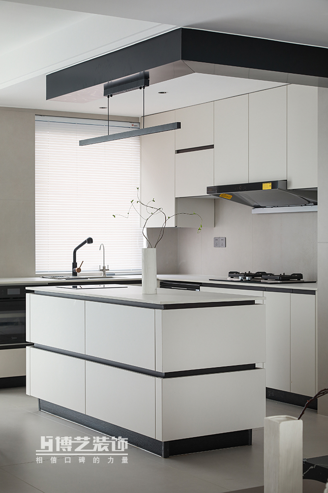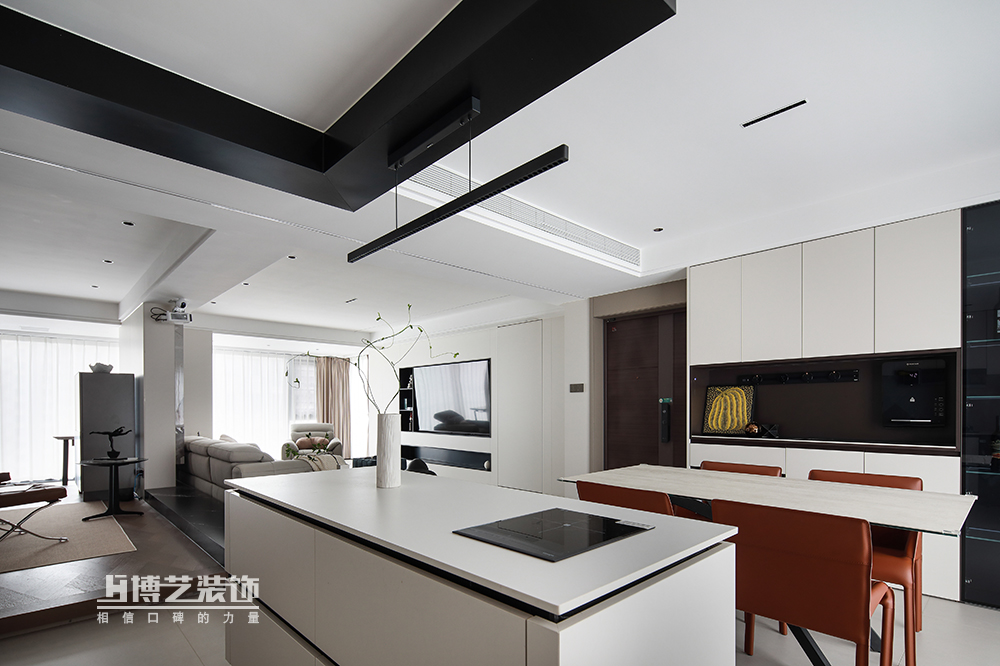 開放廚房更具包容性,中西廚兼?zhèn)錆M足家人對烹飪的喜愛。極簡的餐廚空間搭配讓空間更具時尚感,讓就餐更具浪漫與溫馨。