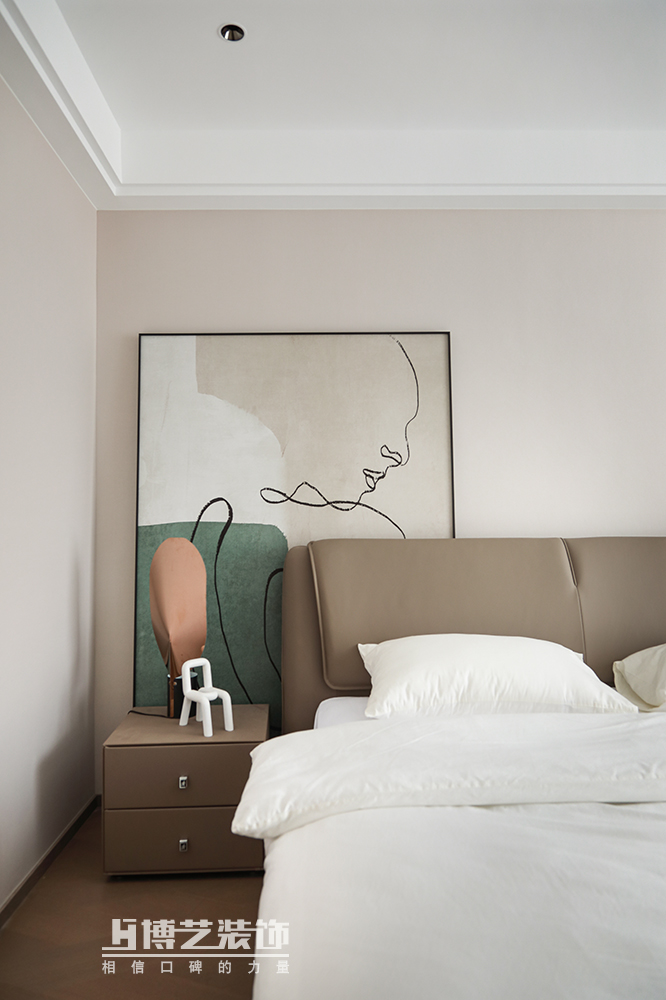 臥室采用無主燈設(shè)計,裝飾一盞床頭燈,打造一個溫馨靜謐的純粹空間。摒除焦慮與不安,感受平靜,把時間分給睡眠。